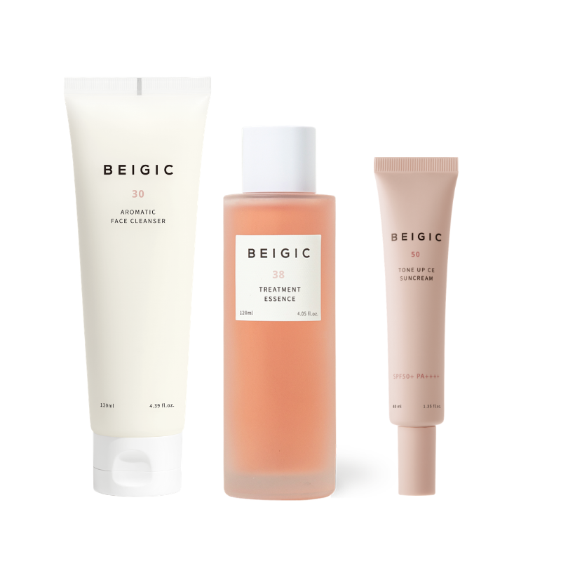 BEIGIC Aromatic Cleanser → Treatment Essence → Tone-Up CE Sunscreen